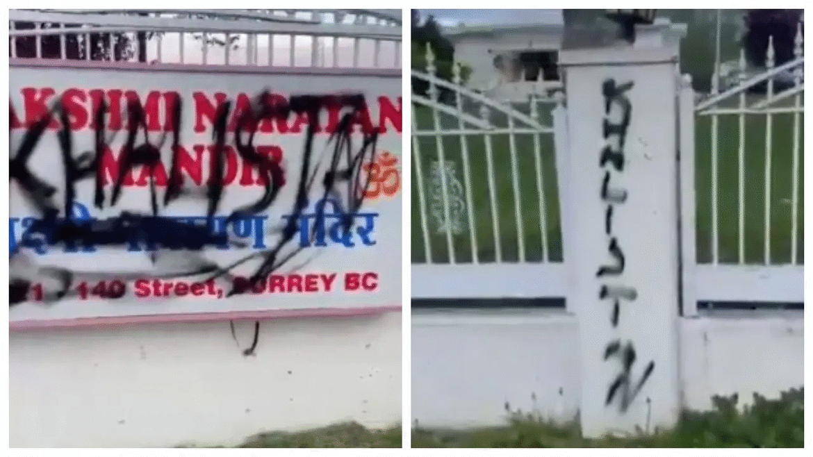 - In yet another troubling episode in Canada’s ongoing struggle with extremist elements, the Lakshmi Narayan Mandir in Surrey has become the latest victim of vandalism — barely hours after a Gurdwara in Vancouver was defaced with Khalistan-related graffiti.