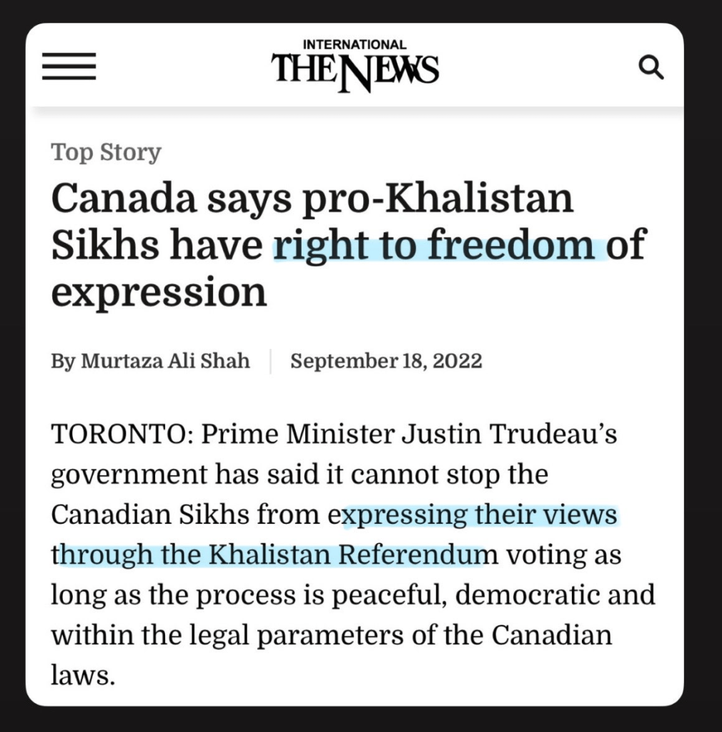 Sovereignty is not a selective principle. If soliciting foreign support to dismantle part of Canada undermines its integrity and warrants strong condemnation, then hosting and excusing movements that openly seek to dismantle another sovereign nation through similar means, rallies calling for partition, funding drives, and rhetoric that normalizes extremism, demands the same scrutiny. Canada cannot claim moral high ground on territorial integrity while dismissing India’s concerns as overreach or intolerance of free expression. The Khalistan movement has involved not just peaceful advocacy but documented cases of extremism, yet Canadian leaders often retreat to Charter protections rather than confronting the security implications.